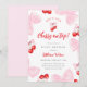 Baby shower de cerisier Coquette. Doté d'un délicieux thème de cerise, d'un élégant script rouge et de douces arcs rose aquarelle, cet invitation est parfait pour une célébration de cerise courtoise.