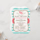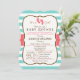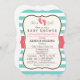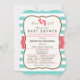 Design de baby shower personnalisé et mignon sur corail tropical d'été rose, bleu aqua, et rayures blanches motif avec police marron. Conception de baby shower neutre pour douches bébé garçon ou fille! Notre boutique, Favors and Decor, se spécialise dans la décoration d'événements, les faveurs de fête et les invitations!