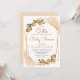 Cette invitation au baby shower à thème agrumes présente un cadre géométrique doré orné d'oranges aquarelles. Le texte personnalisable est dans un script d'écriture moderne orange et noir sans serif. Personnalisez-le avec le nom de la future maman et les détails de la douche. Le dos de la carte est une couleur orange pastel qui correspond aux tons clairs de l'aquarelle à l'avant. Idéal pour un baby shower d'été !