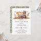 Cette mignonne invitation au baby shower présente d'adorables animaux d'aquarelle en bois - renard, lapin lapin, hibou et ours - avec une bille d'arbre. L'invitation est placée sur un simple arrière - plan blanc avec la date, l'heure et l'emplacement du baby shower dans une police de caractères de bon goût. L'adorable aquarelle des animaux et des arbres et des feuilles ajoutent une touche de fantaisie et d'amusement, et le design général est parfait pour célébrer l'arrivée prochaine de votre petit avec vos proches de façon rustique et enchanteresse.