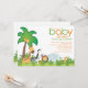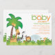 Commencez votre baby shower à thème safari dans la jungle avec nos invitations super mignonnes et modernes aux douches pour bébés animaux de la jungle. Notre invitation baby shower safari comprend un palmier avec une girafe, un zèbre, un lion, un éléphant et un tigre posés sur un arrière - plan marron avec du lettrage vert et orange. L'arrière des invitations se coordonnées avec le devant et comporte un hippo sucré. Des animaux parfaits dans la jungle invitent à un baby shower safari de filles, un "baby shower neutre" ou un baby shower de garçons dans la jungle. Visitez notre boutique www.celebrateitinvtes.com pour une large sélection d'baby showers safari et de douches pour bébés dans la jungle.