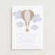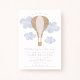 Célébrez un bébé garçon en route avec cette invitation de baby shower d'aquarelle pleine de charme avec une montgolfière et des nuages doux. Parfait pour une soirée sur le thème du ciel, de haut en bas, de haut en bas, cet adorable design donne le ton à un baby shower joyeux qui honore un petit garçon. Personnalisez avec vos détails d'événement et régalez vos invités avec un invitation rêveur et plein de nuages.