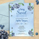 Célébrez le doux bébé en chemin avec cette invitation baby shower aux bleuets. Bleuets mûrs et feuilles dans un effet aquarelle imprimer contre un arrière - plan de lavage à l'aquarelle bleu. Utilisation lors d'un baby shower de bleuets ou d'un événement d'arrosage de bébé; particulièrement pour un bébé, ou modifier pour utiliser pour une invitation de fête de premier anniversaire sucrée de baies. Disponible avec des produits correspondants.