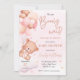 Célébrez l'arrivée d'un petit ours avec cet adorable design d'ours en peluche aux tons rose doux et neutre.