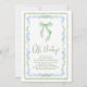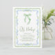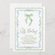 Charmant et mignon invitation de baby shower neutre genre avec cadres d'aquarelle verte et bleue d'inspiration vintage, une aquarelle coquette verte, "Oh Baby" présenté dans un script chic, et le nom de la future mère et les détails de douche dans la typographie serif classique.