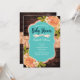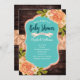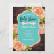 Pêcher Turquoise Bois Aquarelle Fleurs Baby shower Invitation