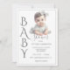 La typographie "BABY" avec douce aquarelle fille en robe blanche a ajouté une invitation baby shower. Baby shower simple et mignon. 100% de satisfaction client avec "Zazzle"