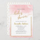 Cette invitation à la fête baby shower présente un texte de calligraphie de parties scintillant d'or sur un arrière - plan d'aquarelle rose. Le design est accentué d'une bordure de parties scintillant en faux or. Le texte personnalisé vous permet d'ajouter les détails de votre douche.