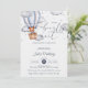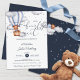 On peut attendre un petit bébé pour être là bientôt. Adorable ourson en peluche invitation à la douche à thème avec un adorable ours en montgolfière dans les nuages et les étoiles. Objets correspondants disponibles dans la boutique Jolie invitation.