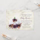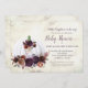 Profitez de cet automne, baby shower à fleurs à couple avec un design citrouille blanc. Citrouille est assis à gauche avec floral sur le dessus et en dessous citrouille. Les couleurs florales sont violettes, oranges, roses et rouges pour une ambiance vintage et bohème moderne. Modèles fournis à l'avant et à l'arrière.