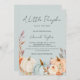 Cette petite invitation à baby shower citrouille à fleurs automnales est parfaite pour un baby shower élégant. Le design présente de beaux citrouilles d'aquarelle en blanc, bleu et orange avec des fleurs de boho en terre cuite et ivoire avec de la verdure sur un arrière - plan bleu. Une police de script élégante est la touche finale parfaite. Personnalisez avec tous les détails pour votre baby shower.