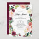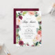 Famille d'Invitations et amis à votre événement avec cette invitation à baby shower fleuri. Il présente une couronne florale d'aquarelle de tourterelles bordeaux, rousses, ivoire et orange, roses, mamans et autres fleurs avec accent feuillage. Cette invitation à la floraison est parfaite pour les baby showers d'automne ou d'automne. Personnalisez en ajoutant les noms, la date, l'heure, le lieu et d'autres détails de l'événement. Vous pouvez customiser plus loin l'arrière de l'invitation en changeant l'image arrière en une photo ou toute autre image.