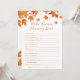 Ajoutez une touche amusante à votre fête avec ce Baby shower d'automne personnalisé qui connaît maman la meilleure carte de jeu. Parfait pour des rassemblements intimes, ce jeu de charme s'intègre parfaitement aux idées de baby shower sur le thème de l'automne et est un grand ajout à votre baby shower d'automne. Que vous planifiez des thèmes de baby shower automne, que vous cherchiez des idées de baby shower automne ou que vous exploriez des idées de baby shower automne et des idées de baby shower octobre, cette carte de jeu apporte une joie saisonnière à votre fête!