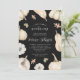 De charmantes invitations à la douche bébé automne sont accompagnées d'une bordure de citrouilles blancs et crème et de feuilles d'automne, avec vos détails de baby shower en lettres blanches sur un arrière - plan noir doux. "Un petit citrouille est sur le chemin de [son/sa]" apparaît en haut. Parfait pour les baby showers d'automne ou d'Halloween.