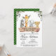 Safari Neutre Genre Bois Bannière Baby shower Invitation Sweet gender neutre safari bébé animaux thème invitation baby shower avec une girafe aquarelle, éléphant, zèbre et lion. Ce baby shower safari est décoré d'une bannière en bois et d'un peu de verdure. Il s'agit d'un baby shower safari sur le thème du genre neutre.