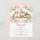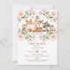 Filles Floral Frame Baby shower de bois douce forêt douce invitation baby shower fille avec cinq mignons animaux de bois entourés d'un cadre rose fleuri. Idéal pour quelqu'un à la recherche d'une invitation à baby shower pour bébés filles à thème boisé mignonne.