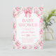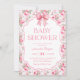 Invitation au Baby shower de la Bow rose. Belle, douce, féminine, motif rose avec coquette design arc rose. Jolie invitation baby shower pour la future maman. Vibes filles vintages et girly parfaites pour un baby shower fille.