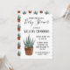 Célébrez l'arrivée prochaine de votre petit paquet de joie avec cette simple invitation en baby shower de cactus en pot. Le design présente un plante cactus succulent dans un pot brun avec une bande de pois. Le même cactus grace le dos de l'invitation dans une formation de grille.
