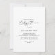 Cette invitation à baby shower de calligraphie de style idyllique est parfaite pour un baby shower rustique. Le design sobre et élégant présente une typographie de script classique et sophistiquée en noir et blanc.