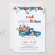 Invitation Baby shower de camion rouge, blanc et plein de fle
