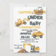 Invitation Baby shower de canon à pompe jaune de construction