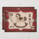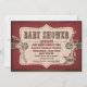 Conception rustique occidentale avec cheval à bascule, corde, badge shérif et éléments de point de selle pour une carte d'invitation baby shower.