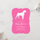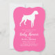 Inclure le grand frère ou la soeur en fourrure bébé dans la fête avec cet adorable baby shower de chien Boxer! Parfait pour un amoureux du chiot avec un bébé en route. Le Boxer est à côté d'une adorable calèche vintage. Le rose en fait un endroit parfait pour une petite fille en route !
