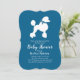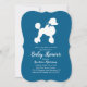 Inclure le grand frère ou la soeur en fourrure bébé dans la fête avec cet adorable baby shower de chien de caniche français ! Parfait pour un amoureux du chiot avec un bébé en route. Le Poodle est à côté d'une adorable calèche vintage. Le bleu est parfait pour un bébé en route !