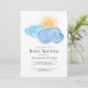 L'invitation baby shower de ce mignon garçon est décorée de nuages d'aquarelle et du soleil. Facile à personnaliser. Aquarelle originale © Michele Davies.