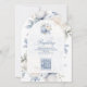 Éblouissez vos invités avec cet élégant invitation de baby shower bleu poussiéreux avec de belles fleurs et une typographie moderne avec code QR pour le registre des cadeaux. Ajoutez simplement les détails de votre événement sur ce modèle facile à utiliser pour en faire une invitation unique.