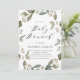 Famille Invitation et amis avec cette invitation baby shower de brunch verdoyante. Il présente des illustrations aquarelle de gerbes d'eucalyptus ensemencées avec motif à points rustiques. Cette invitation à l'eucalyptus est parfaite pour les baby showers d'automne et d'automne. Personnalisez en ajoutant le nom, la date, l'heure, le lieu et d'autres détails de l'événement. Vous pouvez personnaliser davantage le dos de l'invitation en changeant le motif en photo ou autre image.