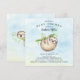 Baby shower doux paresseux pour un baby shower garçon sur un arrière - plan d'aquarelle bleue. Retournez notre invitation pour voir un retour de coordination pour une touche spéciale supplémentaire.