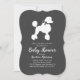 Faites une fête de caniche ! Inclure le grand frère ou la soeur en fourrure bébé dans la fête avec cet adorable baby shower de chien de caniche ! Parfait pour un amoureux du chiot avec un bébé en route. Le caniche français est à côté d'un adorable chariot vintage. L'arrière - plan gris damier est parfait pour une douche neutre ou co-ed pour les hommes !