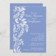 Belle invitation au baby shower de design de feuilles modernes et florales est la première impression parfaite pour votre baby shower bébé. Notre élégante invitation au baby shower présente un motif floral de feuilles blanches sur un arrière - plan bleu Baby sombre. Parfait pour un baby shower de printemps, un baby shower d'été ou un baby shower d'automne.