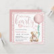 Fêtez l'arrivée à venir avec cette adorable invitation baby shower "We Can Bearly Wait" pour une petite fille. Doté d'un ours en peluche couleur aquarelle avec arc rose, ballon moelleux, accents d'eucalyptus et bordure rayée rose, ce design sucré est parfait pour les douches à thème ours ou d'inspiration boisée. Customisez facilement tous les détails de l'événement pour un invitation magnifique et personnalisé.