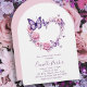 Vous recherchez une invitation de baby shower unique et élégante ? Celle-ci est ornée d'une couronne de papillon floral en forme de coeur aquarelle qui saisit parfaitement la joie d'une nouvelle arrivée. Orné de roses roses délicates et de papillons violets gracieux, le design dégage charme et raffinement. Au centre de la couronne, en écriture et en typographie élégantes, le message sincère dit : "Un petit papillon est en route." Cette invitation est entièrement personnalisable, vous permettant d'ajouter tous les détails de votre événement et de le rendre unique à vous. Idéal pour célébrer la naissance prochaine d'une petite fille ! Personnalisez le vôtre maintenant pour en faire votre propre !