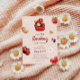 Baby shower invitation avec des illustrations de lovebug mignonnes, cupcake, fleur et fraise, le tout dans un jeu de couleurs rouge, blanc et marron clair. Les illustrations sont assorties d'une police de script ludique et d'une élégante sans serif dans laquelle toutes les informations personnalisées sont écrites. Consultez notre magasin pour plus d'articles de cette collection.