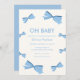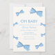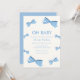 Thème baby shower Bow, thème baby shower moderne, thème baby shower garçon, invitation baby shower, conçu avec cadre d'arc bleu cascade minime mignon et typographie "Oh Baby" en couleur arrière - plan beige. Objets correspondants dans notre magasin Urban Aglow Design.