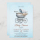 Invités Invitations à célébrer avec cette invitation de baby shower garçon classique vintage bleu. Dotée d'une charmante illustration d'un chariot de bébé antique, cette conception intemporelle est parfaite pour honorer le petit gentleman en chemin. Personnalisez avec vos informations ou cliquez sur "Cliquez pour customiser plus loin" pour modifier les styles, la taille et les couleurs des polices.