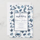 Baby shower Aquarelle moderne avec des tons blanc et bleu marine. Caractéristiques crustacés, crabes, hippocampes, étoiles de mer et autres nautiques voir la vie et les coquilles avec une aquarelle rayée arrière. Idéal pour un bébé ! Correspondance d'éléments avec celui-ci ! Besoin d'aide pour la mise en page, envoyez-moi un courriel à tkatz@me.com