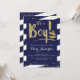 Baby shower Nautique Boy Invitation Marine baby shower rayé bleu et blanc pour garçon avec confetti d'or