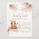 Moderne minimaliste Genre Neutre Boho Teddy Bear Guitare "we can bearly wait" invitation baby shower. caractéristiques design aquarelle ours en peluche assis sur la balançoire boho jouant la décoration guitare avec l'herbe de pampas.