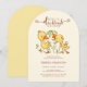 Une jolie invitation au baby shower avec "Deux petits canetons sucrés sont en route" en douce délicate typographie verte moderne et écriture stylée, plus deux canetons doux. Personnalisez le nom et les détails de la douche de la maman-to-be dans une délicate typographie verte.