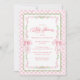 Cette invitation au baby shower rose du grand-millénaire capture l'élégance intemporelle avec une touche fraîche et romantique, ce qui en fait un endroit idéal pour célébrer une petite fille. Le design se compose d'un délicat arrière - plan en treillis rose pâle, accentué de verdure aquarelle et de somptueuses guirlandes florales qui encadrent les détails centraux. Deux arcs rose aquarelle apportent une touche de coquette féminine, alliant charme d'inspiration vintage et sophistication moderne. La calligraphie gracieuse et la typographie serif classique mettent en valeur les détails de l'événement d'une manière qui se sent raffinée mais accessible. Idéal pour les hôtes qui veulent donner le ton pour un événement de belle facture, cette invitation se marie parfaitement avec la décoration inspirée du millénaire, la vaisselle et les faveurs pour un look cohésif. Un choix intemporel qui séduira les amateurs de motifs floraux, arc et héritiers, cette invitation personnalisée au baby shower fait que la célébration est aussi spéciale et inoubliable que la petite qu'elle honore. Disponible sous forme de cartes imprimées ou en téléchargement numérique instantané.