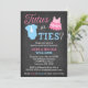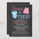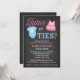 Les mignons tutus et les cravates de sexe révèlent des invitations à des fêtes. Un genre populaire révèle le thème d'une tenue tutu rose girly et un petit rompre bleu garçon avec cravate sur un arrière - plan de tableau noir. Personnalisez facilement avec vos détails d'événement.
