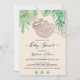 Jolie Invitation Baby shower Jungle Sloth. Cette adorable invitation au baby shower présente un bébé paresseux souriant accroché à une branche, encadré de feuilles de jungle couleur verte. Parfait pour un baby shower neutre pour les femmes. Le revers est décoré d'un motif en feuille. Customisez cette invitation avec vos coordonnées. Aquarelle originale © Michele Davies.
