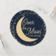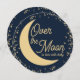 Sur la Lune en amour avec bébé, étoile ciel brillant invitation baby shower en bleu et or de minuit. Polices de style rétro adorables et un grand croissant de lune en déclin.