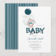 Invitation Baby shower balloon lapin bébé flottant à balloon personnalisée pour un petit être aimé. Créez et Customisez rapidement votre Baby shower Invitation bleue et blanche. Cliquez sur le bouton "Customisez-le !" pour modifier la taille du texte, la couleur du texte, le style de police et plus encore !