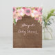 Invitations de douches pour bébés personnalisées avec motif rustique en bois de campagne et jolies aquarelles de fleurs vintages roses. Parfait pour un baby shower de printemps ou d'été.