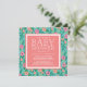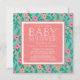 Invitation vos invités de baby shower dans un style d'été coloré avec nos invitations à la douche bébé à motifs floraux. Jolie conception corallienne et aqua présente un motif tropical doux et capricieux dans les tons rose, corail, vert et turquoise, avec vos détails de baby shower affichés en blanc sur le corail.